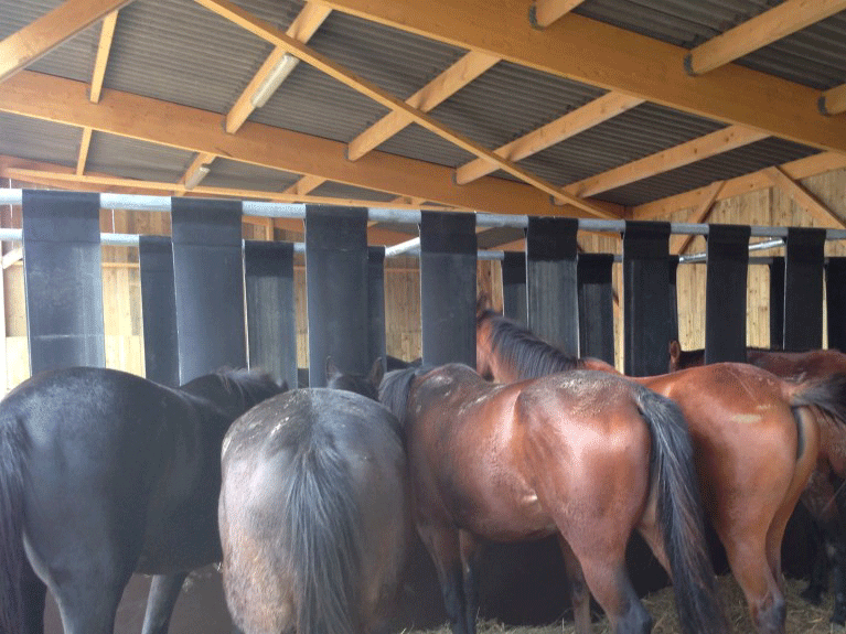 Râtelier avec passages de têtes, droits en bande caoutchouc, renforcé 3 plis.